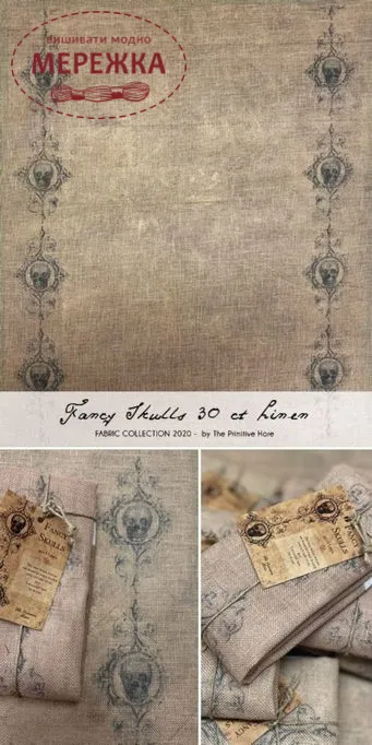 Рівномірне полотно The Primitive Hare ручного фарбування Fancy Skulls Linen 30 ct 40*50 см.