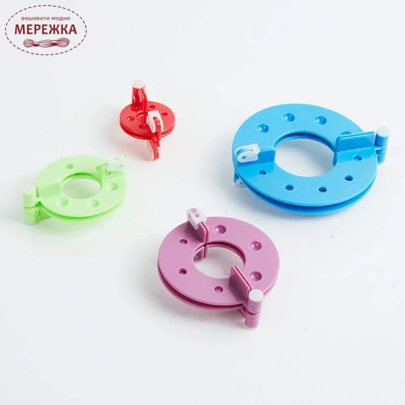 Набір із 4-х інструментів для виготовлення помпонів різних розмірів.