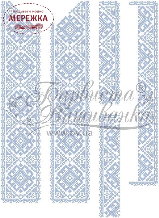 Тканина із нанесеним малюнком-схемою, на котрій дуже легко вишивати, оскільки вона має спеціальні місця для вколювання і виколювання голки, чіткий малюнок. Склад тканини: домоткане полотно (50% поліестеру, 50% котону). Тканина розкроєна на куски розмірами: 150см*150 см - 1 шт, 35см*75см - 1 шт.