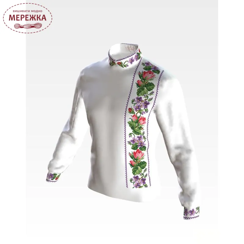 Заготовка на домотканому полотні для вишивання сорочки чоловічої "Троянди і фіалки" СЧ060 від ТМ Барвиста Вишиванка.