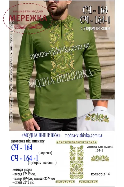 Сорочка чоловіча Модна Вишивка СЧ-164, темно-зелена