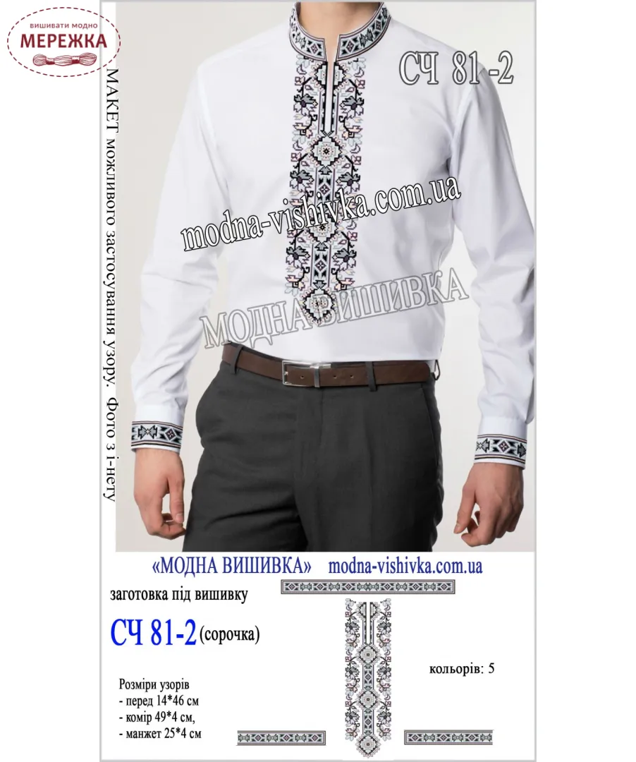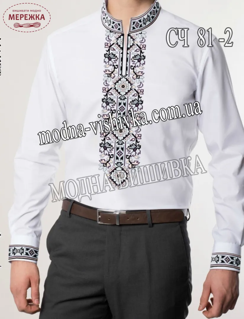 Сорочка чоловіча Модна Вишивка СЧ-81-2, біла домоткана