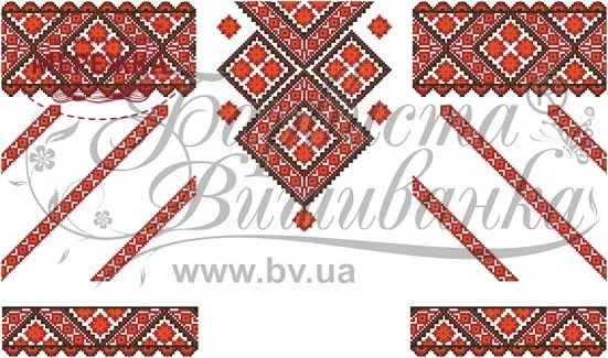 Тканина із нанесеним малюнком-схемою, на котрій дуже легко вишивати, оскільки вона має спеціальні місця для вколювання і виколювання голки, чіткий малюнок. Склад тканини: домоткане полотно (50% поліестеру, 50% котону). Тканина розкроєна на куски розмірами: 70см*150 см - 1 шт, 78см*100см - 1 шт.