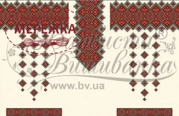 Тканина із нанесеним малюнком-схемою, на котрій дуже легко вишивати, оскільки вона має спеціальні місця для вколювання і виколювання голки, чіткий малюнок. Склад тканини: домоткане полотно (50% поліестеру, 50% котону). Тканина розкроєна на куски розмірами: 150см*75 см - 1 шт, 50см*75см - 2 шт.