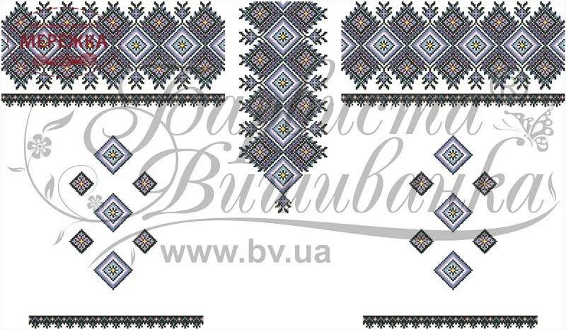 Тканина із нанесеним малюнком-схемою, на котрій дуже легко вишивати, оскільки вона має спеціальні місця для вколювання і виколювання голки, чіткий малюнок. Склад тканини: домоткане полотно (50% поліестеру, 50% котону). Тканина розкроєна на куски розмірами: 150см*75 см - 1 шт, 50см*75см - 2 шт.