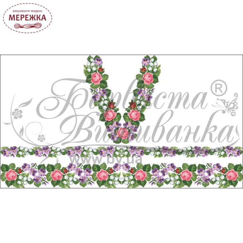 Тканина із нанесеним малюнком-схемою, на котрій дуже легко вишивати, оскільки вона має спеціальні місця для вколювання і виколювання голки, чіткий малюнок. Склад тканини: домоткане полотно (50% поліестеру, 50% котону). Тканина розкроєна на куски розмірами: 150см*75 см - 1 шт, 50см*75см - 2 шт.