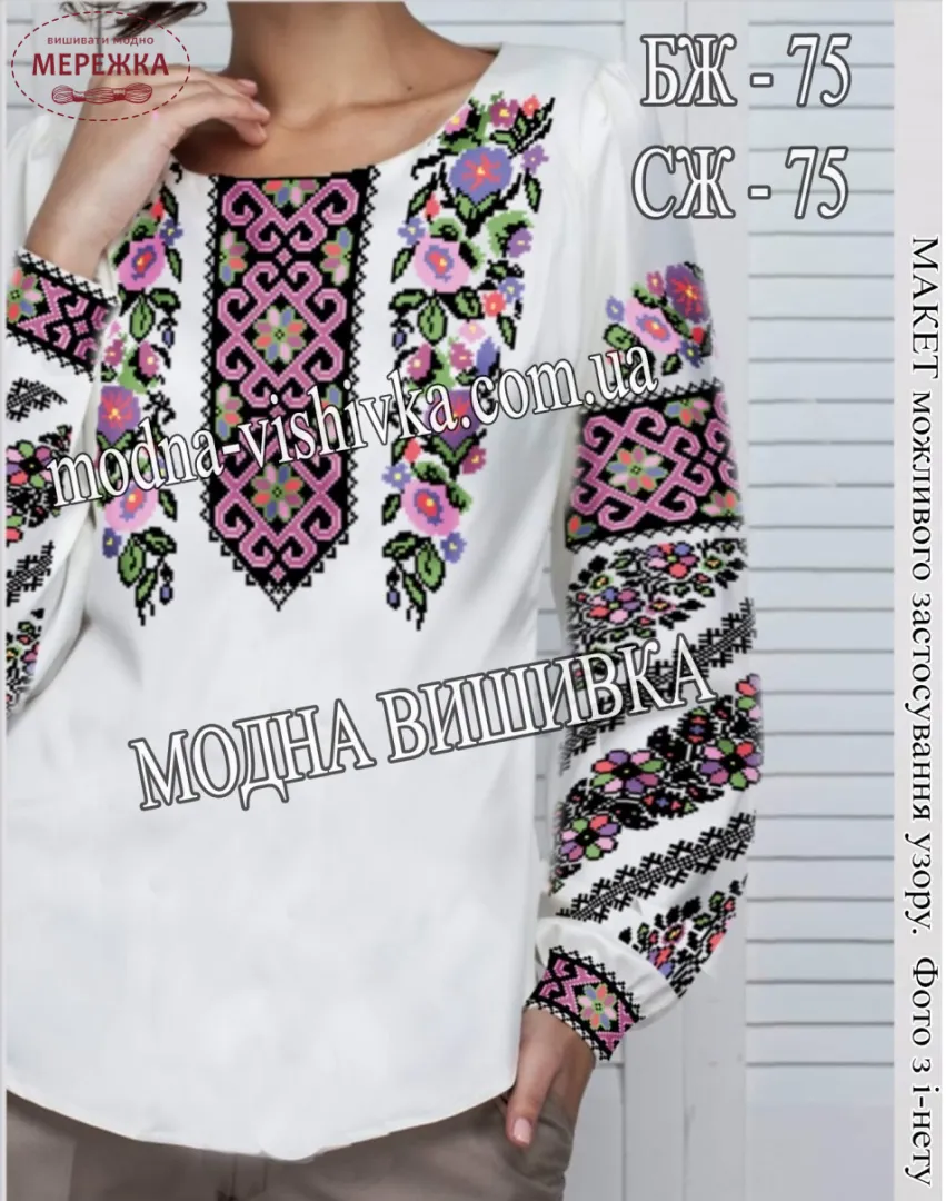 Блуза жіноча Модна Вишивка БЖ 075, біла домоткана