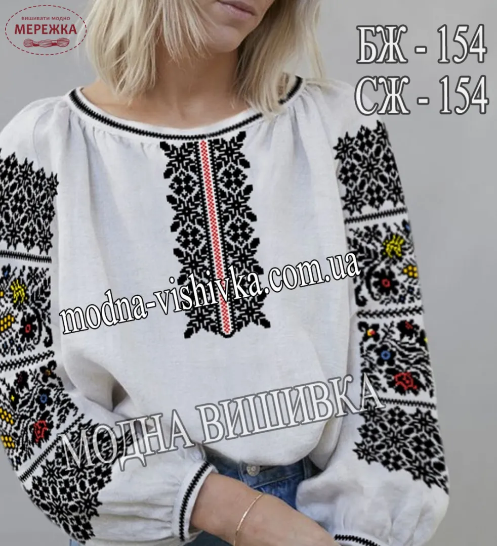 Блуза жіноча Модна Вишивка БЖ-154, біла домоткана