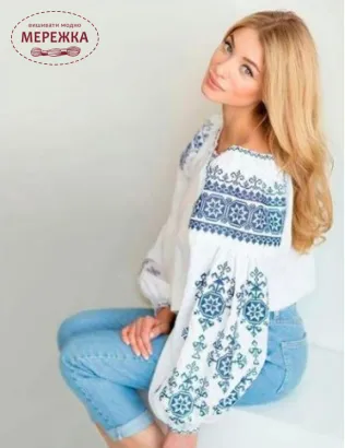 Блуза жіноча Модна Вишивка БЖ VK-1, біла домоткана
