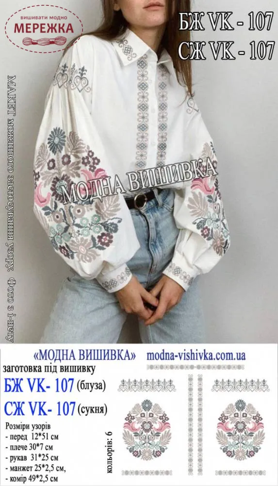 Блуза жіноча Модна Вишивка БЖ VK-107, біла домоткана