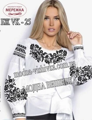 Блуза жіноча Модна Вишивка БЖ VK-25, біла домоткана