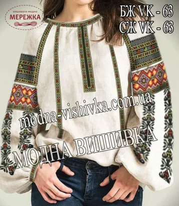 Блуза жіноча Модна Вишивка БЖ VK-63, біла домоткана