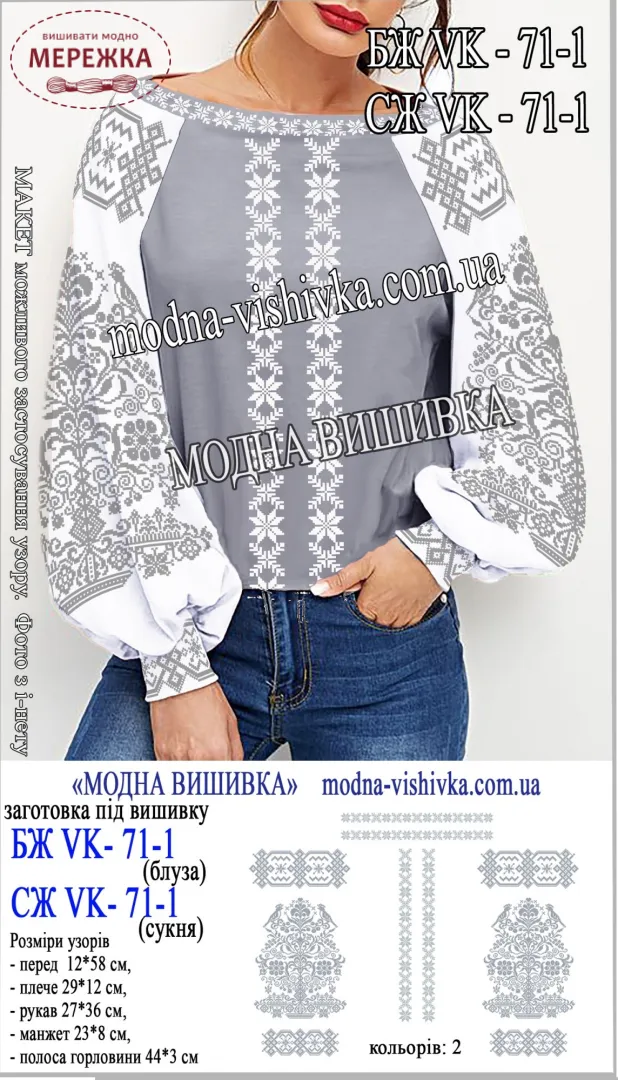 Блуза жіноча Модна Вишивка БЖ VK-71-1, комбінована