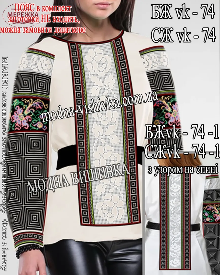 Блуза жіноча Модна Вишивка БЖ VK-74, біла домоткана