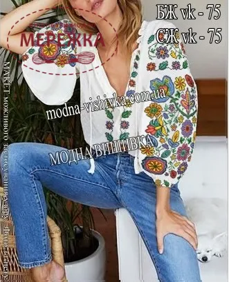 Блуза жіноча Модна Вишивка БЖ VK-75, біла домоткана