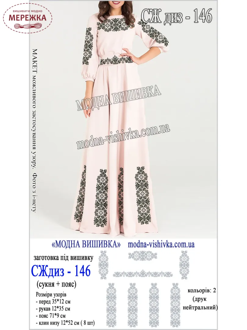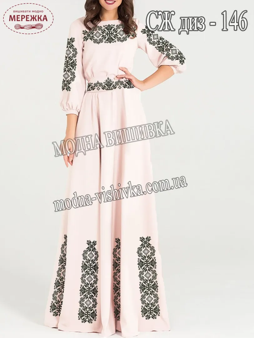 Заготовка на габардині для вишивання жіночої сукні від ТМ "Модна вишивка".