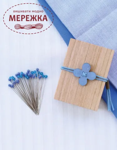 Красиві швейні шпильки в компактній коробці з вишневого дерева. До комплекту входить 30 шпильок із напівпрозорими та непрозорими скляними голівками, відповідного кольору.