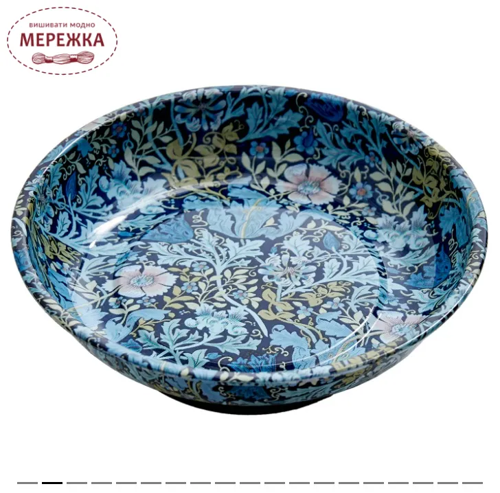 Якісна металева магнітна тарілочка для голок з друкованим дизайном, натхненним мистецтвом та ремеслами, з дерев'яною обробкою.