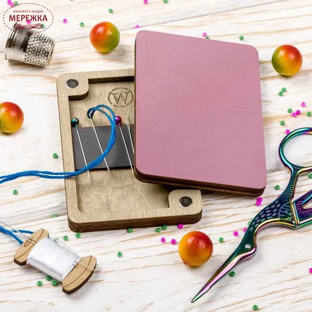 В комплекті вмонтована на дні виробу магнітна стрічка, яка надійно фіксуватиме голки, булавки, шпильки. Скринька закривається кришкою з фанери за допомогою міцних магнитів, тож надійне зберігання голок забезпечене. Чарівний дизайн скриньки теж вартий вашої уваги.