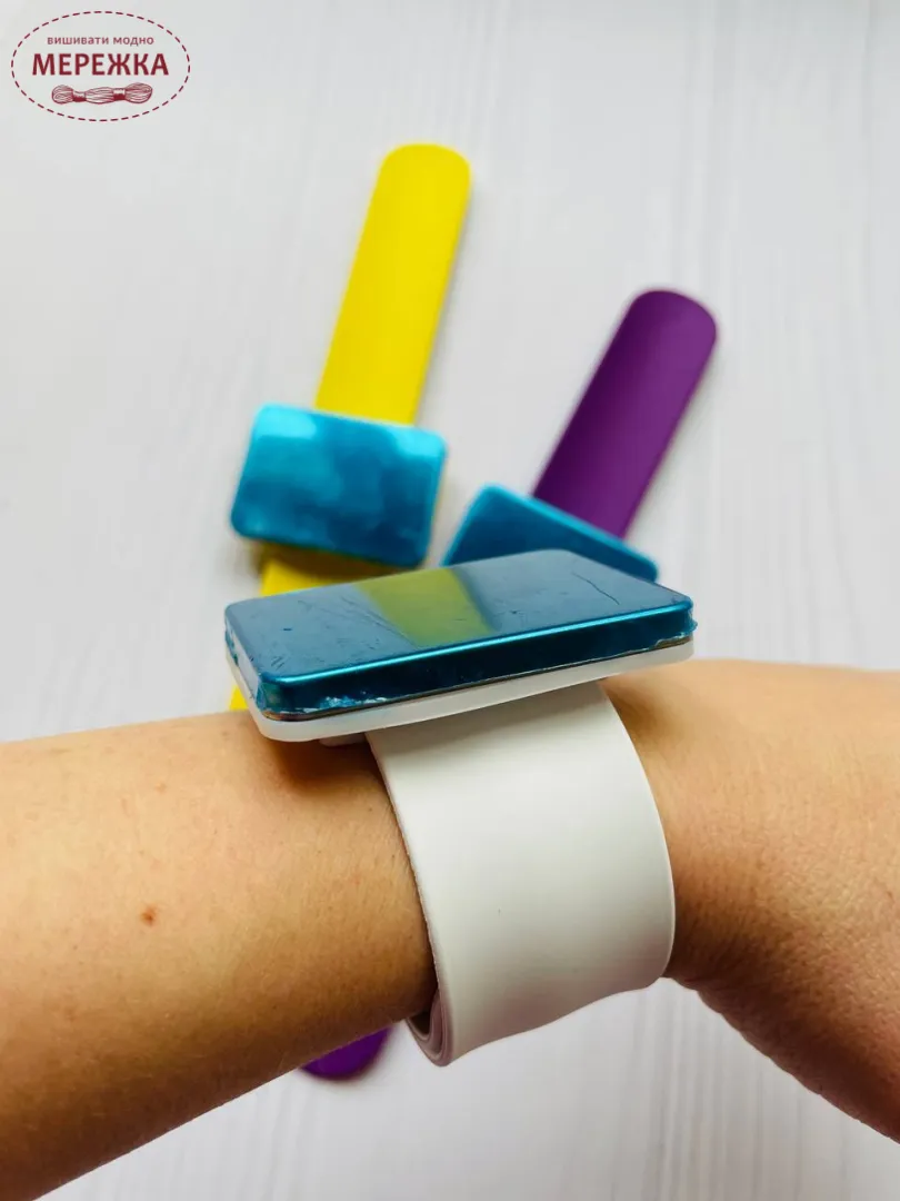Завдяки гнучкому силіконовому браслету, голківницю зручно тримати на зап'ясті, браслет підходить на будь-яке зап'ястя.