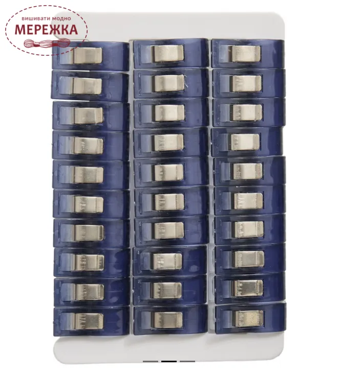 Набір із 30 затискачів для тканини для шиття, насиченого темно-синього кольору.
