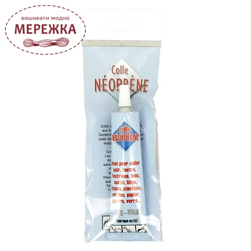 Міцний неопреновий клей, підходить для паперу, тканини, пластику, шкіри.