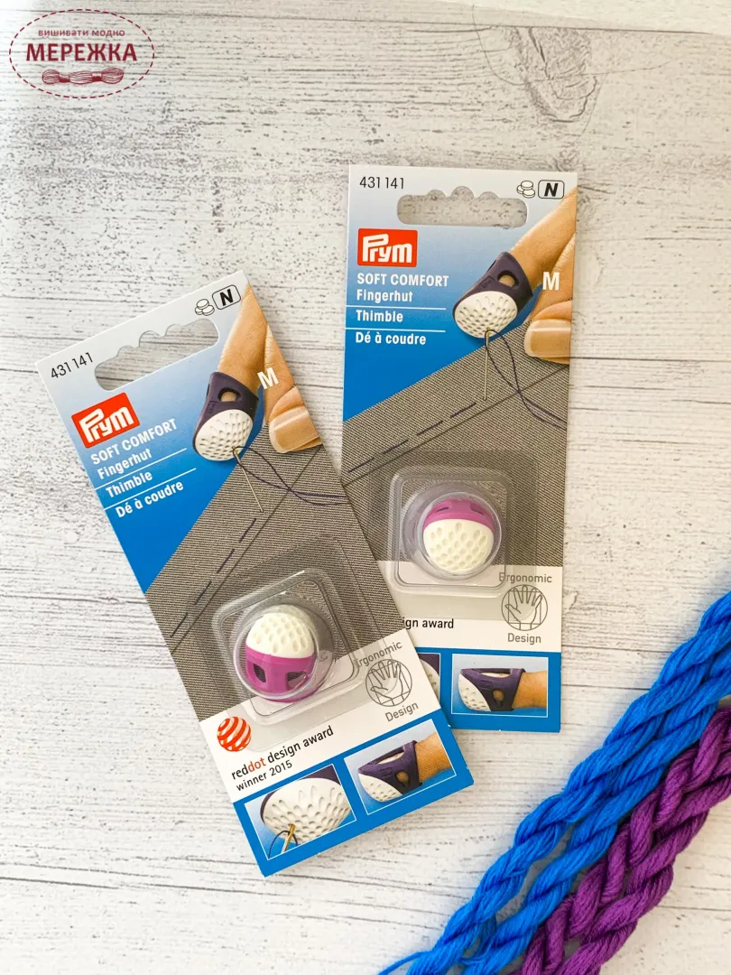 Ергономічний, м'який наперсток фірми Prym. Дуже зручний, має отвори для вентиляції, поглиблення для нігтя.