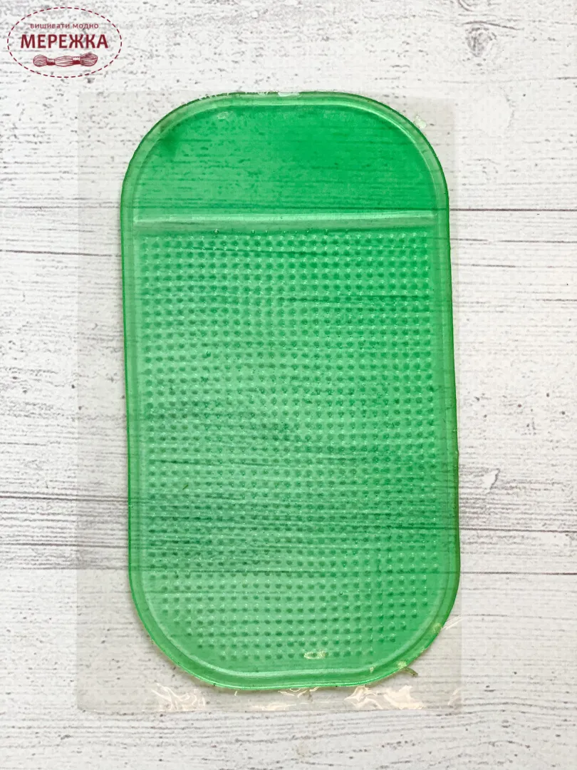 Потрібно висипати на нього невелику кількість бісеру, бісеринки ніби прилипають до нього, і вже тоді вишивати з килимка.