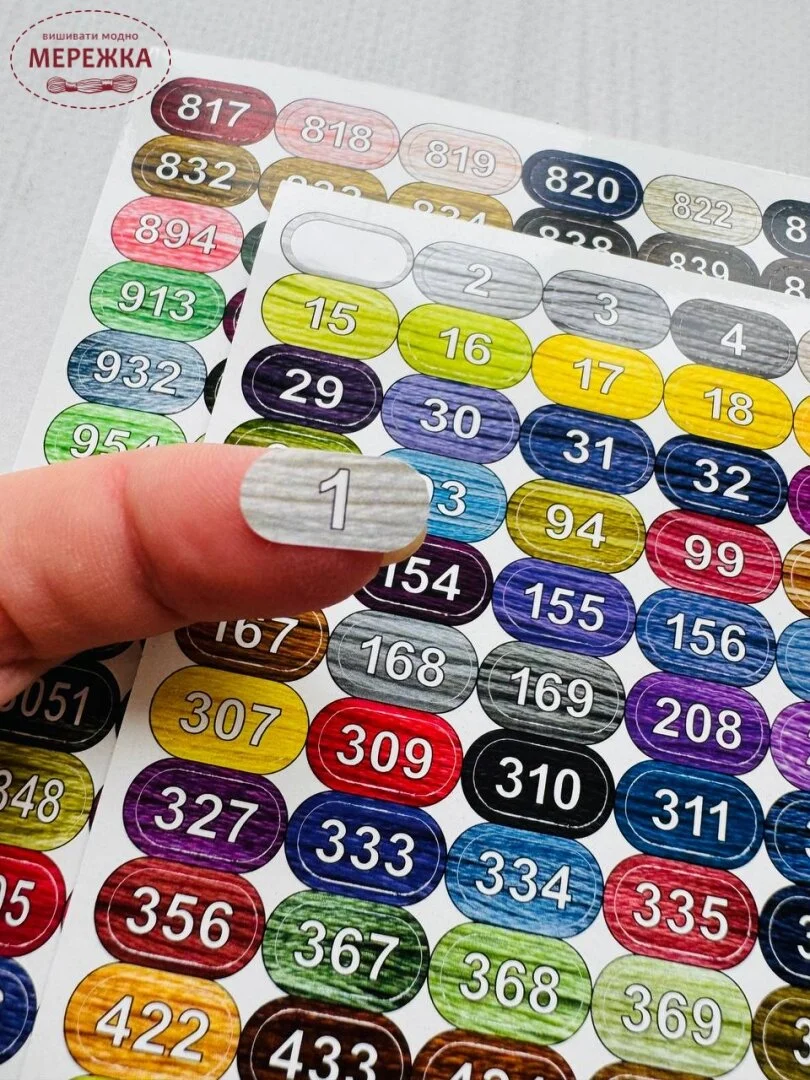 Великим плюсом цих наліпок є наявність кольору муліне, що полегшує пошук та організацію муліне.