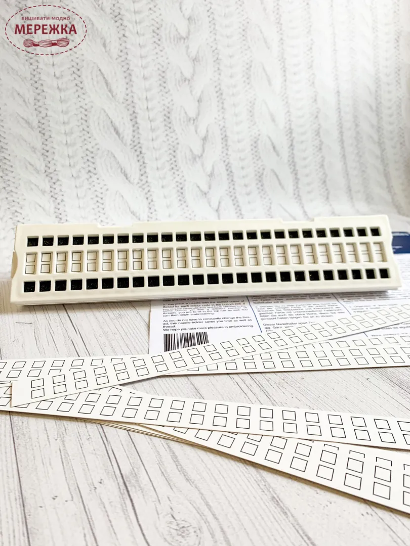 Органайзер містить 50 комірок, по 25 з кожної сторони для паркування голок з муліне під час вишивання.