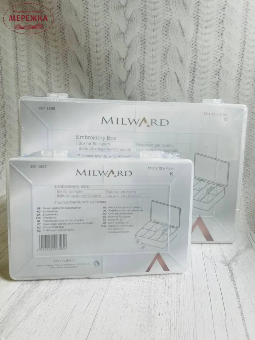 Пластиковий органайзер для муліне від фірми Milward- бестселер вже протягом багатьох років серед вишивальниць. Великим бонусом є наявність у комплекті 50 порожніх картонних бобінок.