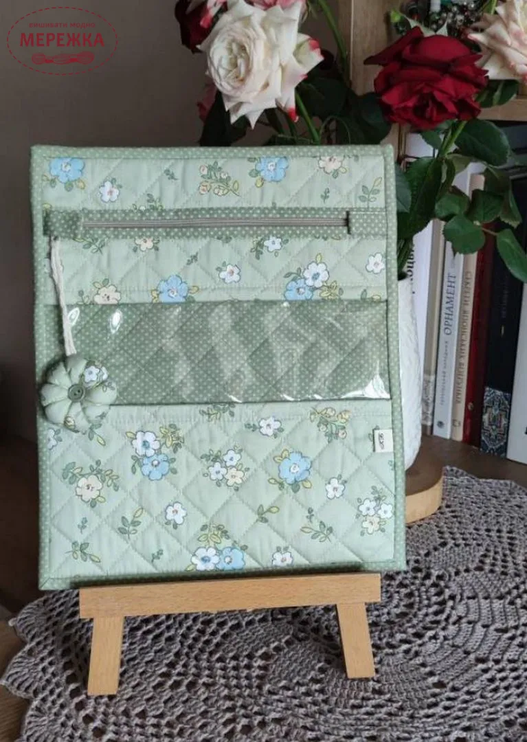 Органайзер для рукоділля Катерина Бутитер конверт Квіти-5 світло-зелений 25*30 см.