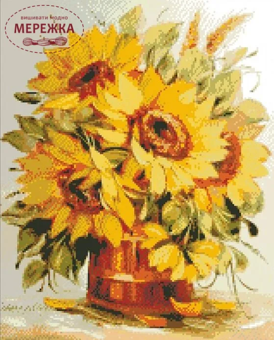 Алмазна вишивка (Алмазна мозаїка) Букет соняшників, 40*50 см. АМ5000