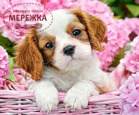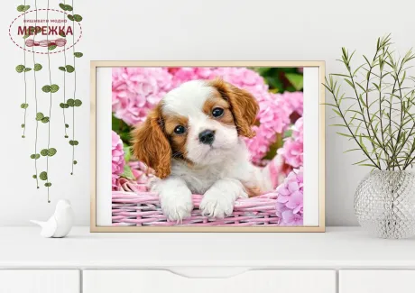 Набір для творчості зі стразами на підставці - милий цуцик у квітах.