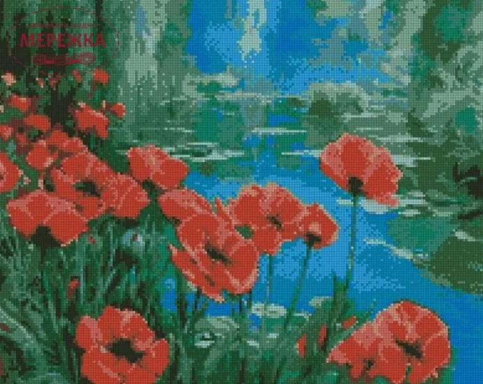 Алмазна вишивка (Алмазна мозаїка) Маки біля ставка, 40*50 см. АМ6119