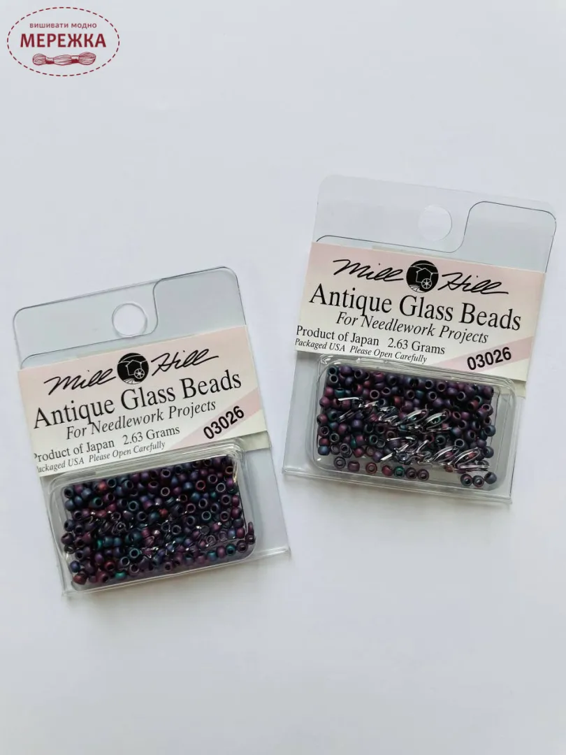 Бісер Mill Hill - японського виробництва, проте розфасований в США. Він найвищої якості, не линяє під час прання, колір та розмір відповідає номеру вказаному на упакуванню.