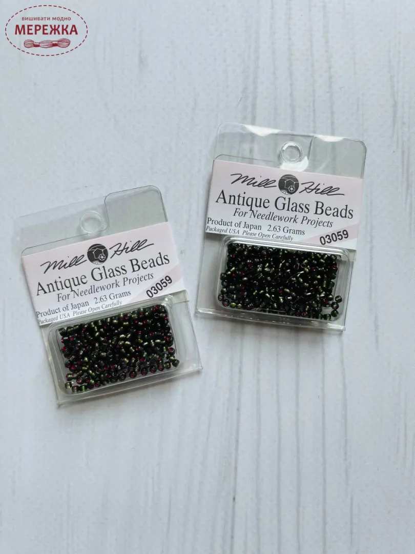 Бісер Mill Hill - японського виробництва, проте розфасований в США. Він найвищої якості, не линяє під час прання, колір та розмір відповідає номеру вказаному на упакуванню.