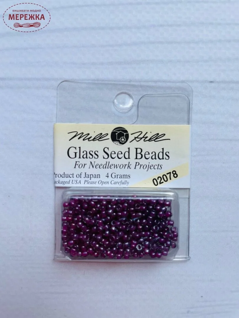 Бісер Mill Hill - японського виробництва, проте розфасований в США. Він найвищої якості, не линяє під час прання, колір та розмір відповідає номеру вказаному на упакуванню.