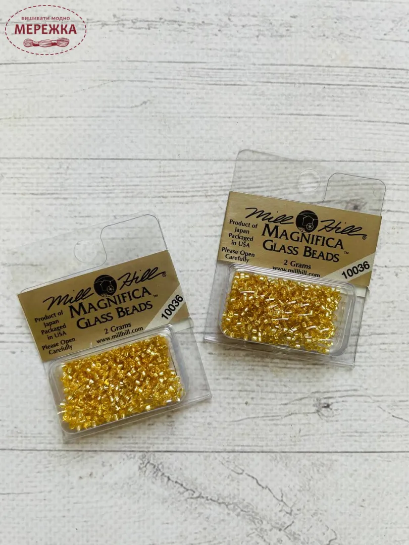 Бісер Mill Hill - японського виробництва, проте розфасований в США. Він найвищої якості, не линяє під час прання, колір та розмір відповідає номеру вказаному на упакуванню.
