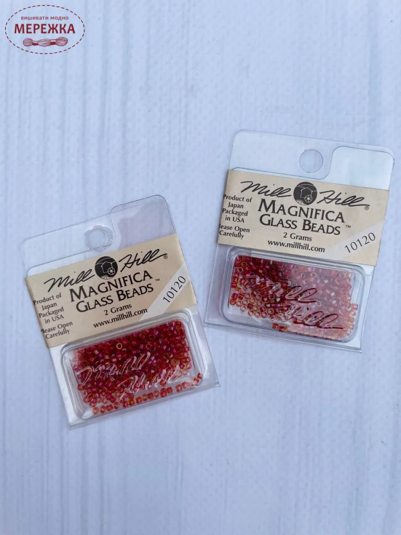 Бісер Mill Hill - японського виробництва, проте розфасований в США. Він найвищої якості, не линяє під час прання, колір та розмір відповідає номеру вказаному на упакуванню.