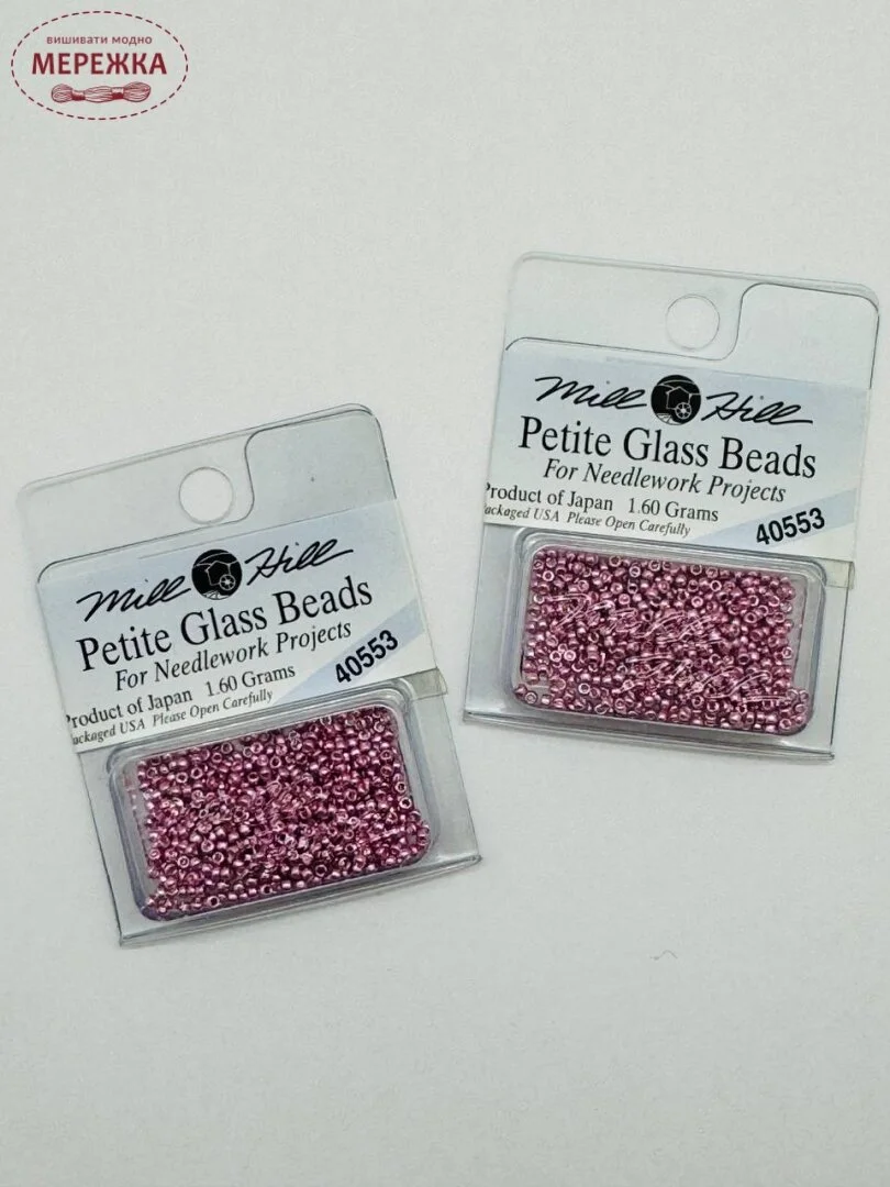 Бісер Mill Hill - японського виробництва, проте розфасований в США. Він найвищої якості, не линяє під час прання, колір та розмір відповідає номеру вказаному на упакуванню.