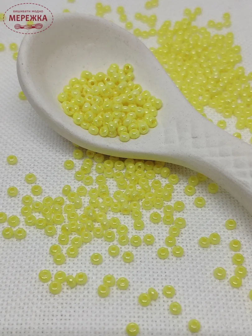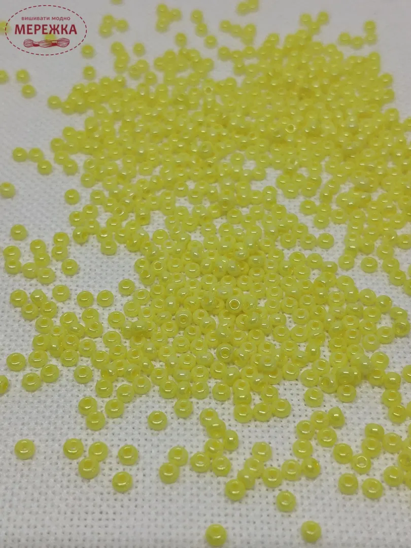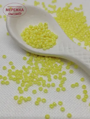 Бісер 16186 круглий, перламутровий жовтого кольору.