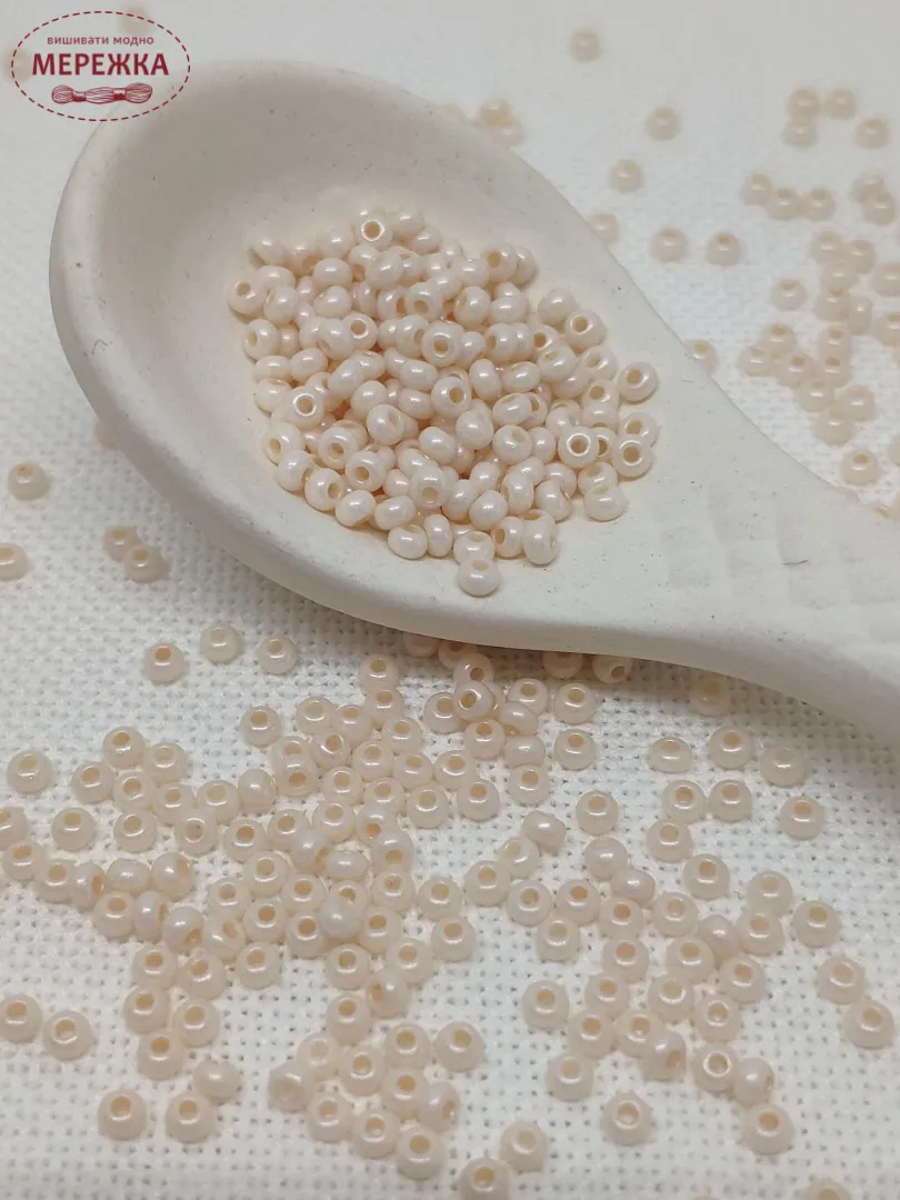Бісер 16218 круглий молочного кольору.