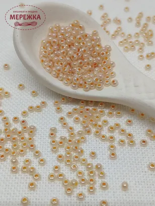 Бісер 37383 круглий з промальованою серединкою персикового кольору.
