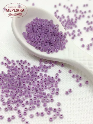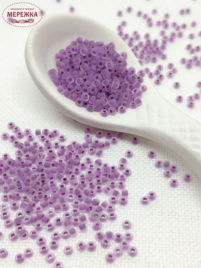 Бісер 38328 матовий з промальованою фіолетовою серединкою.