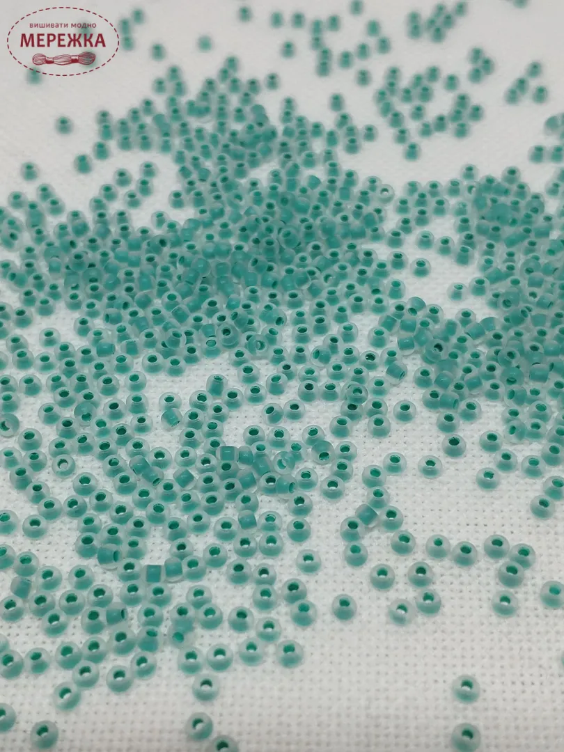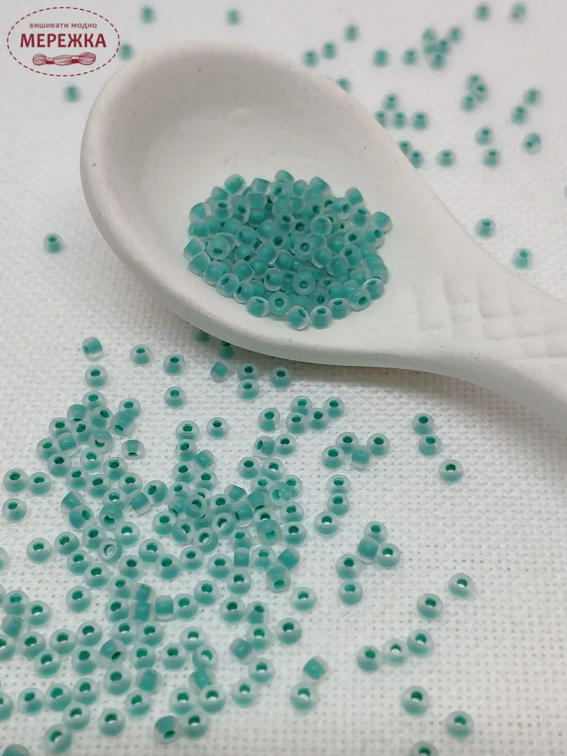 Бісер 38358 круглий, матовий з промальованою серединкою кольору морської хвилі.