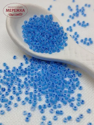 Бісер 38365 матовий з промальованою серединкою синього кольору.