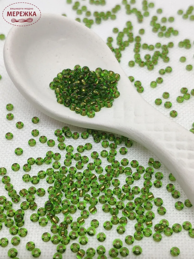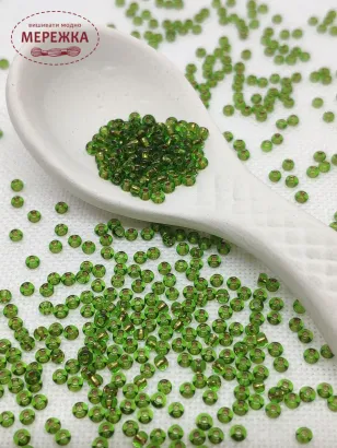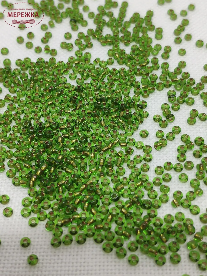 Бісер 59430 оливкового кольору з промальованою блискучою серединкою.