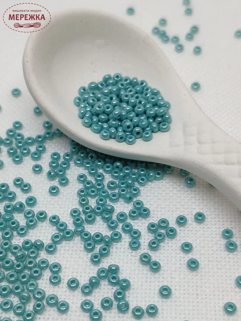 Бісер 68130 перламутровий, голубовато-зеленого кольору.