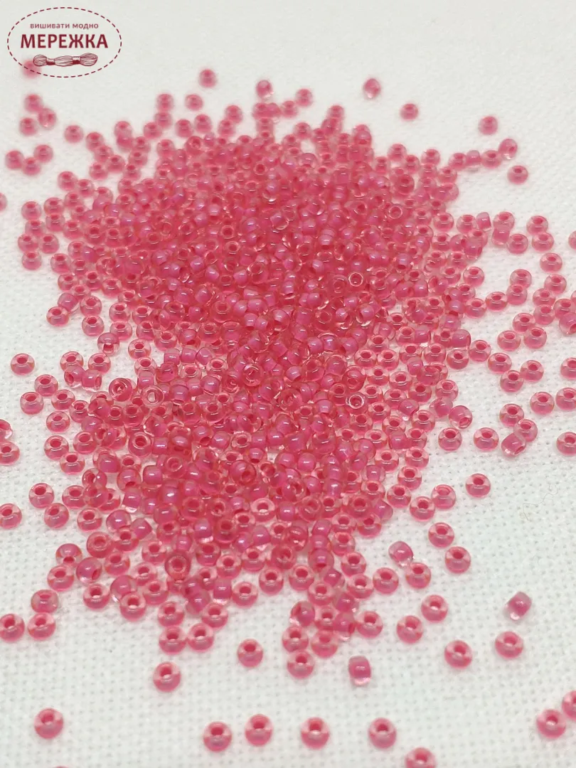 Бісер 80998 прозорий, з промальованою серединкою рожевого кольору.